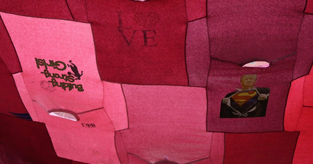The exhibition also includes a new commission of discarded jeans sewn together, creating intimate and informal seating areas within the gallery. These works create a form of exchange with the viewer, their own bodies becoming an integral part of the work.