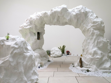 For Open Space #5, the artist designed a site-specific work, a fantastical landscape, Too Blessed 2 be Stressed! This immersive, surrealist-tinged installation is composed of plants, coloured lights, and geological modules. These modules, called "Funk Mounds" are of various shapes and sizes and are filled with cavities into which the artist has arranged objects that she collected in Paris and South Central LA, from a plurality of vernacular cultures among those of the African diaspora. Creating new connections across borders and eras, these futuristic “reliquaries” are receptacles of living memory, one that the artist continuously nurtures. The installation is accompanied with a soundtrack, a Funk Manifesto, written and read by the artist herself.