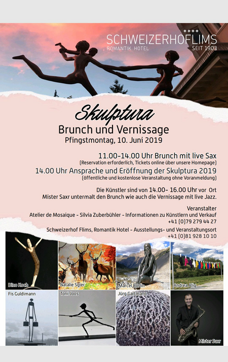 Silvia ZuberbĂĽhler & Familie Schmidt mit dem Schweizerhof Team freuen sich auf die vierte Skulptura.