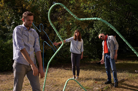 Performance to be touched is the second episode of an ongoing project What comes into being? in which performers and visitors co-create the work in the real time and space of the performance. The authors, dance artist and choreographer Zrinka Šimičić Mihanović and visual artist Marina Bauer, have chosen the courtyard of the Academy of Fine Arts in Zagreb as the meeting place for this encounter. The place where the city and the forest touch each other, where the constructed meets the grown and the cultivated interweaves with the abandoned. Performance to be touched develops through six stations - 'Landing', 'Barefoot Islands', 'Running Guides', 'Choreography of Touch', 'Eyes Closed', and 'Moulding'. They all invite and foster movement and listening from outside in and from inside out. Touch and movement are approached as a foundation for learning about the world and establishing relationships.