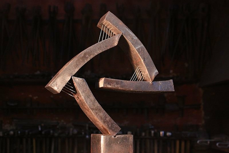 Die Arbeit mit dem Stahl fordert zwei Seelen: eine, die ordnet, nach Regelmäßigkeit verlangt, Exaktheit und Klarheit zum Inhalt hat und eine andere, die nach Ursprünglichkeit, dem Dynamischen, auch Chaotischen sucht. In meinen Arbeiten, besonders den freien plastischen Werken, versuch ich, dieses Seelen durch die “Sprache des Stahls“ zu prägen. Erst der glühendweiche Stahl auf dem Amboß eröffnet Kreativität, die Entwicklung von ursprünglichen Kräften. Der Schmied muss sein Material von innen her erfahren, sich einlassen, sich mit ihm messen und seinen Widerstand begreifen. Bei der Verwendung verschiedener Materialien entsteht aus der innewohnenden Spezifik des Einzelnen eine Symbiose: Raum, Transparenz, Licht und Reflexion werden in einer Form vereinigt.