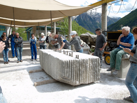 In Theoriestunden erfahren Sie mehr zu Entstehung, Abbau und der manuellen Verarbeitung von Naturstein. Dazu erhalten Sie schriftliche Unterlagen. Beim Besuch des Marmorsteinbruchs am Fuß des Pizzo Castello können Sie Spuren der historischen Entwicklung der Natursteingewinnung entdecken und beobachten wie heute mit modernster Technik im Untertag-Abbau exklusiver Cristallina Marmor gewonnen wird.