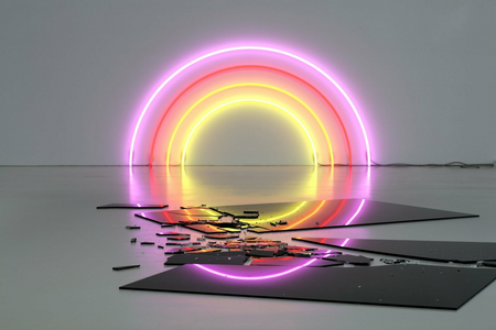 Image: Lori Hersberger, SUNSET 164, 2006, Neon, schwarzes Floatglas, 1,84 x 3,68 m (Neon), Installationsmaße variabel, © Lori Hersberger Studio, Zurich, Photo: Hans-Georg Gaul, Berlin