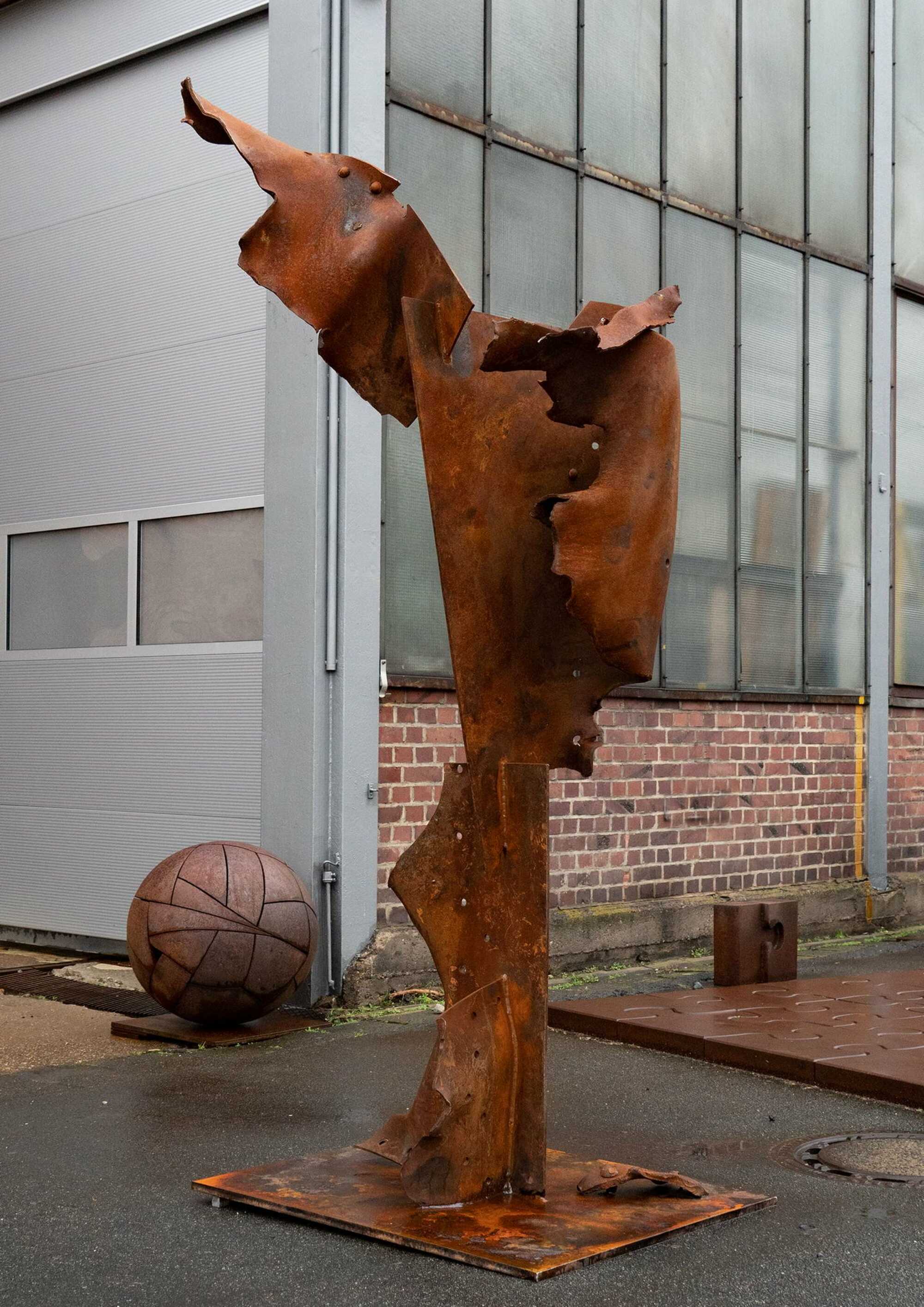 Wolf setzt sich seit Jahrzehnten mit der Bearbeitung von Stahl auseinander: ob SchweiĂźbrenner, Hydraulikpresse oder Lasercut, er ist mit allen Techniken vertraut. Wenn er an seinen Skulpturen arbeitet, ist er mit vollem physischem Einsatz am Werk; er performt die Skulptur.