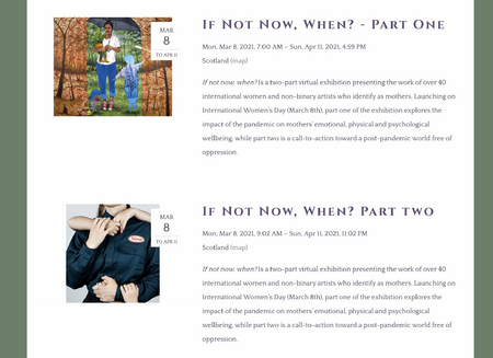 If not now, when? Is a two-part virtual exhibition presenting the work of over 40 international women and non-binary artists who identify as mothers. Launching on International Women’s Day (March 8th), part one of the exhibition explores the impact of the pandemic on mothers’ emotional, physical and psychological wellbeing, while part two is a call-to-action toward a post-pandemic world free of oppression. A year on from the first lockdown’s being imposed around the world, we are facing the reality that “unless we act now, the pandemic could set women’s rights back by decades” (United Nations 2020). This past year has seen systems of oppression rise to the surface once more, and has uncovered inequalities which can no longer be overlooked.