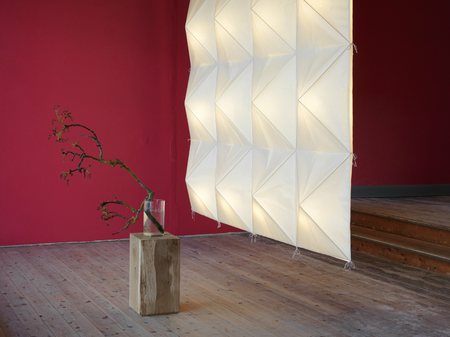Considering the pavilion’s architectural features – its height and light as well as its exterior setting, the Park Dräi Eechelen – Vo has created a conceptual garden comprising a selection of Isamu Noguchi’s historic Akari lamps and a new mineral- and plant-based installation by Vo.