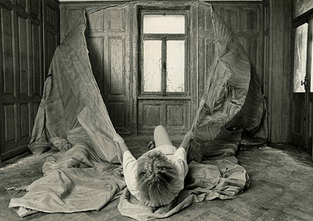Picture: Heidi Bucher beim Häutungsprozess von Herrenzimmer, 1978, The Estate of Heidi Bucher, © Foto: Hans Peter Siffert
