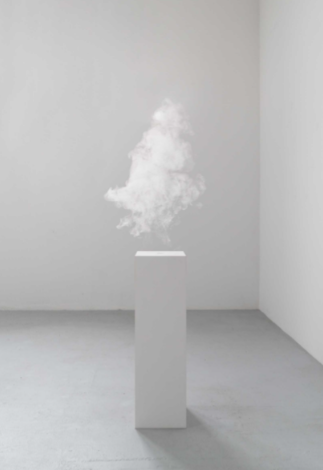 Picture: Lyoudmila Milanova / Steffi Lindner, The Sky Eludes All Attempts At Planning, 2017, kinetic sculpture (fog machine, fog fluid, electronics, motor, wooden base), 120 x 35 x 35 cm, Photo: © Lyoudmila Milanova / Steffi Lindner