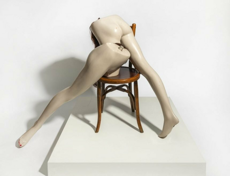 In this exhibition, the central nave of Gallery 1 presents a re-creation of the artist’s studio, a jumbled scenario in which the artworks cohabit with shelves, dolls, magazines and fragments of diverse objects and mannequins; images and references that, like a cabinet of curiosities, becomes the real cornerstone of her work.