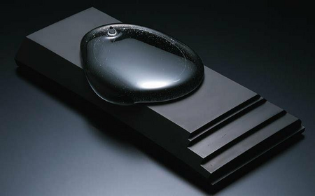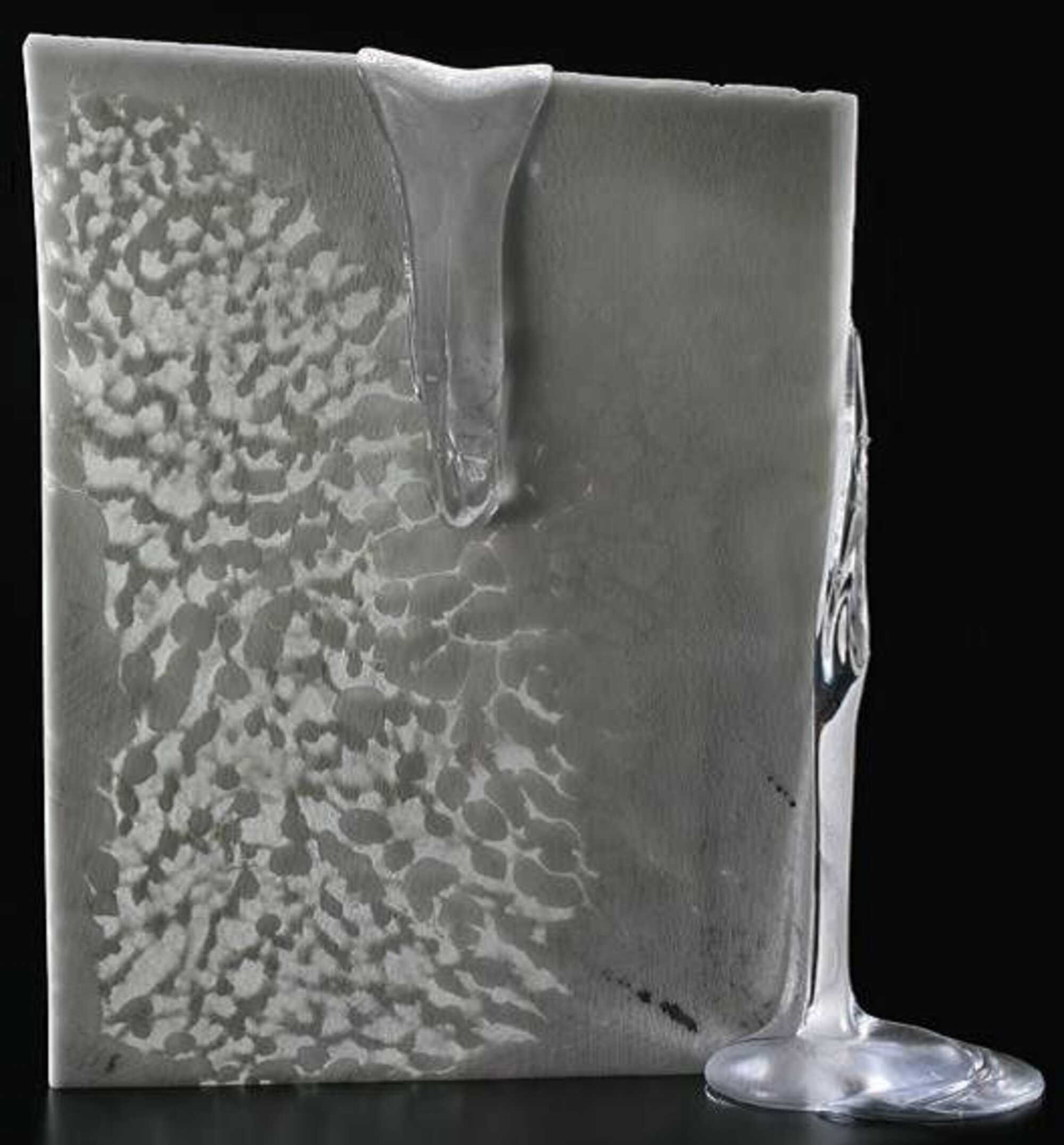 All the masterpieces were created in a continuous process demanding the artist´s total involvement including the handicraft. The Japanese collection is an outstanding evidence of the interconnection between artistic vision and technological managing accompanied by the mastery of craft skillfulness. Basic shapes are mostly geometrical and they were made using a kiln-cast process. Cold work as cutting and polishing followed. The final form of each piece was defined as hot glasswork where the kiln-cast objects were exposed to burning glass mass flowing down over the cold surface. Strict geometry meets hardly predictable amorphous spontaneity in order to create a surprising harmony of a seeming contrast. Colours are a considerable part of the sophisticated concept. Some works are almost colourless (for black and white are actually no colours and crystal glass is purely transparent) while other works shine with uranium green or calm down with their discreet pink coloration. The charm of the whole collection is enhanced by the fact that every piece is imposing from the first sight and yet, it offers endless delight of contemplation while observing subtle details. Names of works refer to Japanese culture, ancient architecture and nature.