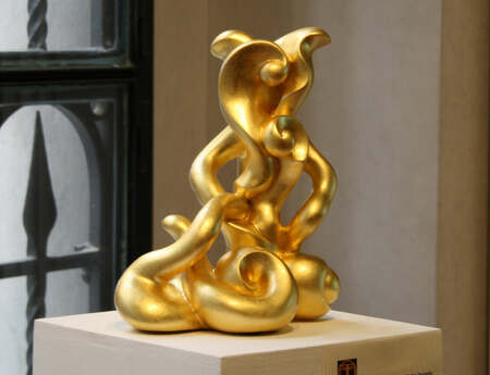 Metamorfosi aurea, pietra calcarea con foglia oro