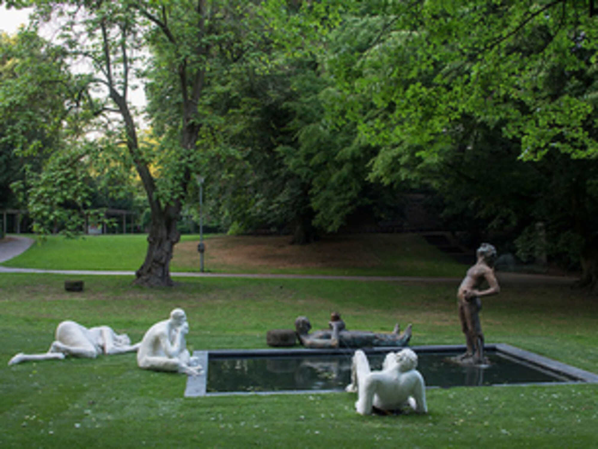 In a different way, the vandalism of Nicole Eisenmanâs Sketch for a Fountain created social conflict. One of the figuresâ head was cut off in early summer. In September the work was spray-painted in blue with a swastika among other signs. Despite the fact that Skulptur Projekte is conceived as a temporary exhibition format, a selection of works will remain in the urban space of MĂŒnster as part of the âPublic Collectionâ. But as of today, it has not yet been decided which projects will stay. However locals have already initiated a money raising campaign to install Eisenmanâs work permanently.