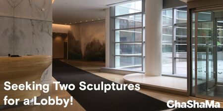 Chashama is facilitating the purchase of two sculptures for a newly renovated residential lobby space. These pieces may be pre-existing, or may be made for the space. The lobby is beautiful, filled with light, white stone and light-colored wood. The ceilings are 15' and the pedestals for the artwork are each approximately 5'x6', but are irregularly shaped; please see diagrams below.