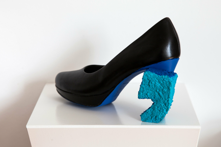 Ute Faber's artwork replaces the heel of a high heel with the apostrophe and thus poses the question: What kind of perspective does a heel actually make? Â How would I see the world in these shoes and does the apostrophe also point to the gender gap in our society?