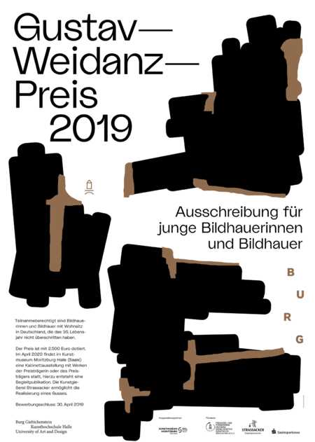Die Burg Giebichenstein Kunsthochschule Halle schreibt 2019 zum 20. Mal den traditionsreichen Gustav-Weidanz-Preis für Plastik aus. Dieser gehört zu einem der wenigen Nachwuchsförderpreise Deutschlands, die ausschließlich der Bildhauerkunst vorbehalten sind. Die Auszeichnung wird gemäß der testamentarischen Verfügung des halleschen Bildhauers und langjährig an der BURG tätigen Hochschullehrers Gustav Weidanz (1889–1970) seit 1975 turnusmäßig vergeben.