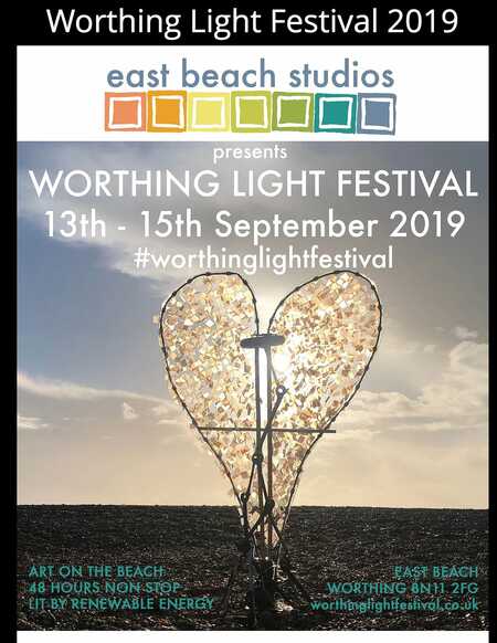 East Beach Artists Collective presents Worthing Light Festival, an exhibition of stunning, sustainable art installations that light up on the beach. All of the sculptures are lit by renewable energy.