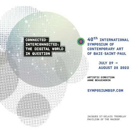 For its 40th anniversary, the Symposium international d’art contemporain de Baie-Saint-Paul is inviting thirteen artists to create a work inspired by the theme “Connected-Interconnected: The Digital World in Question.” The event will be held from July 29 to August 28, 2022. Twelve of these artists will work at Baie-Saint-Paul on the site of the Musée d'art contemporain de Baie-Saint-Paul, while the natural space of the Domaine Forget in Saint-Irénée will be offered to the thirteenth artist in a novel collaboration between these two institutions in the heart of the Charlevoix region of Quebec.